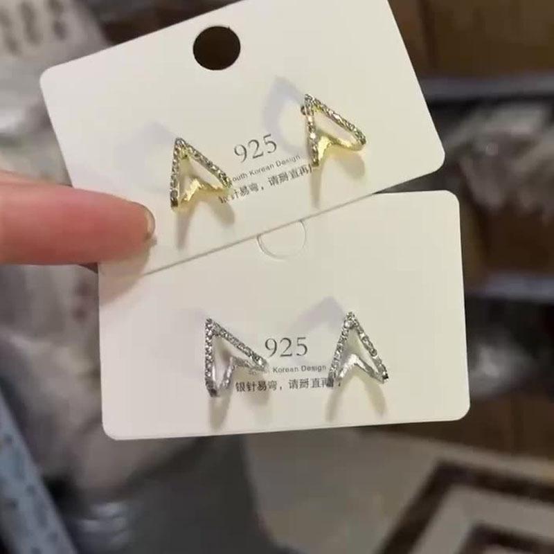 S925 Tremella Needle New French Triangle Earrings Women, Korean Temperament Earrings Female Internet celebrity earrings tide
