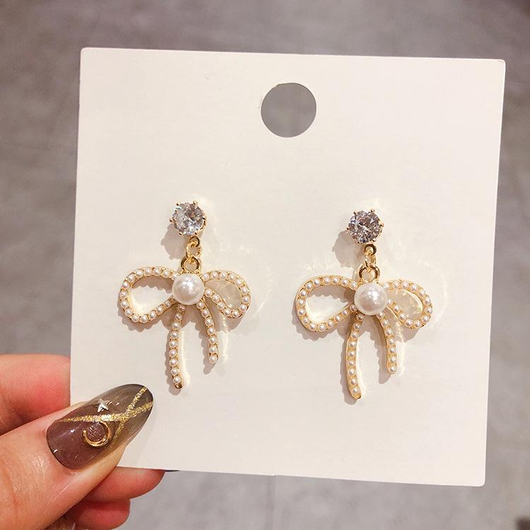 Brincos de laço Dongdaemun Coreia brincos de borla longa feminina brincos de tarraxa com pérola incrustada brincos femininos