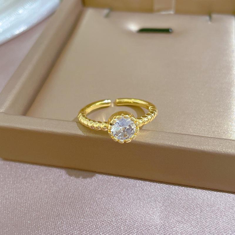 Real Gold Minimalist Zircon Simple Open Ring Women'S Japan And Korea Niche Simple Design Sense Index Finger Ring