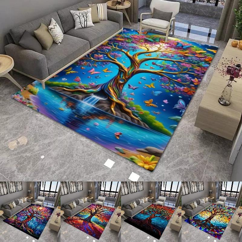 Colorful Tree Printing Large Area Rug Non-Slip Wear-resistant Carpet for Living Room Bedroom Soft Floor Mat Home Decor Fashion