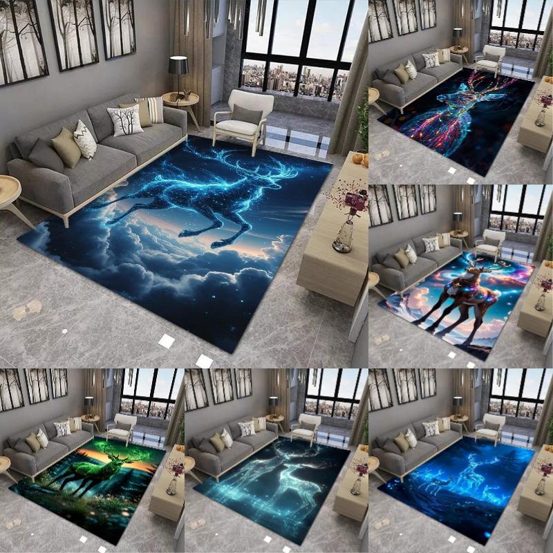 Dreamy Deer Printing Large Area Rug Non-Slip Wear-resistant Carpet for Living Room Bedroom Soft Floor Mat Easy Clean Home Decor