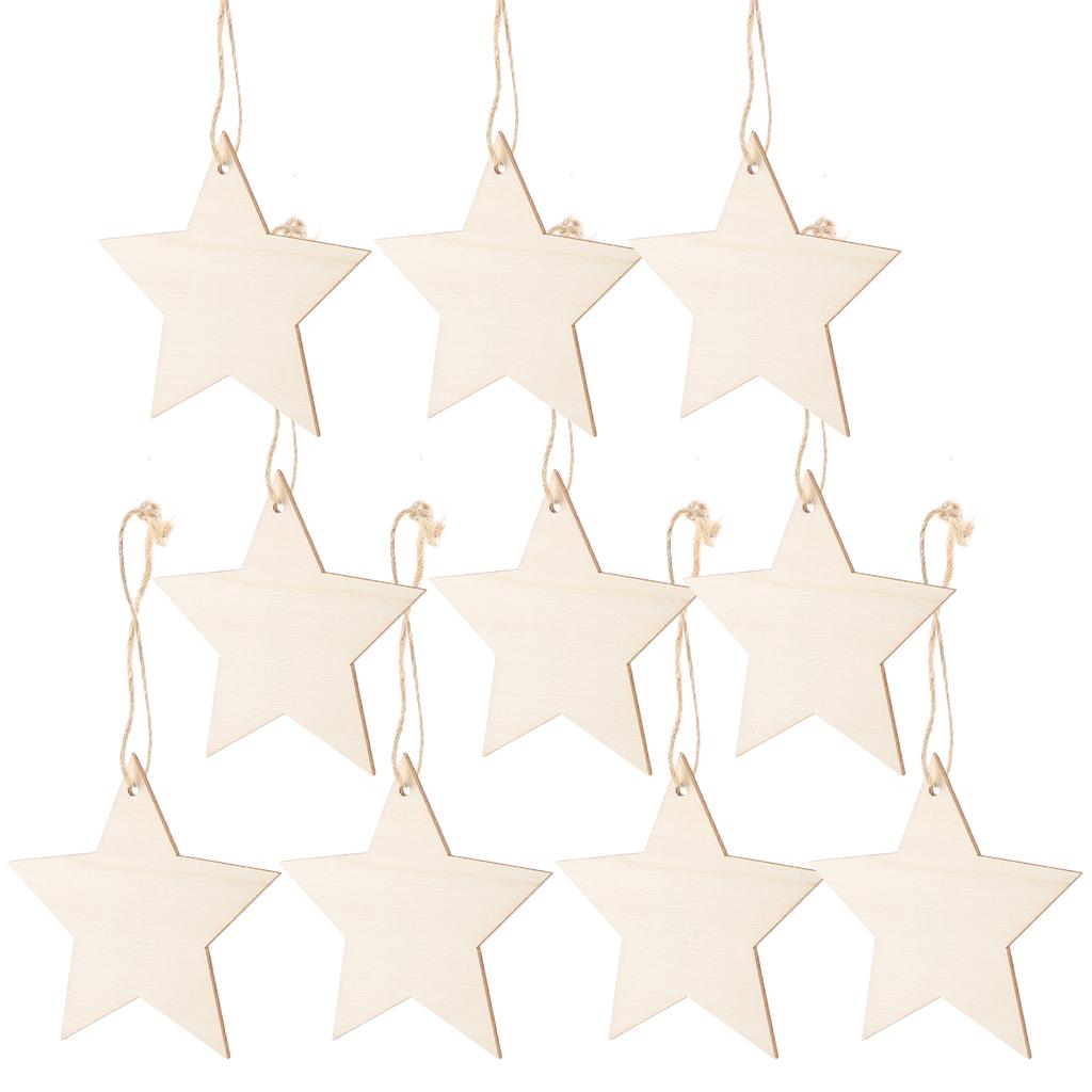 50Pcs Wooden Star Pendant Adorable Pentagram Hanging Ornament for Christmas Tree Decor DIY Craft with Mini Hole Premium