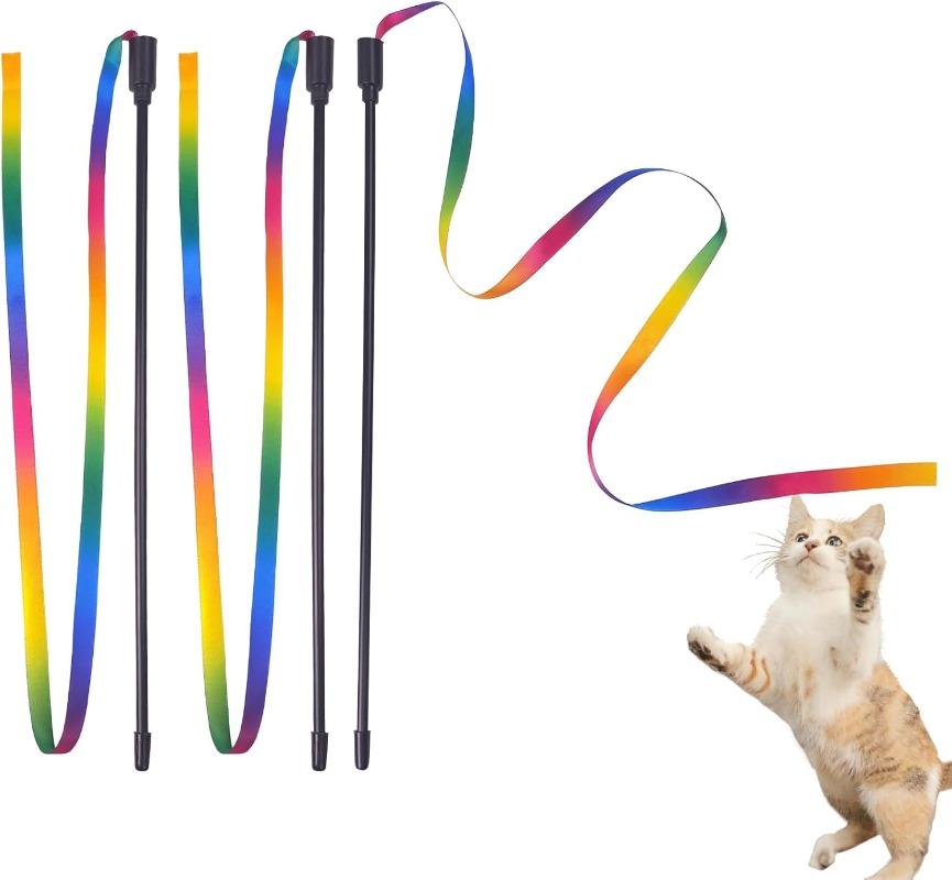Interactive Coloured Ribbon Cat Toys Teasing Catd Stick Satin Ribbon Cat Stick Toys Kitten Playing Teaser Wand Toy Pet Supplies