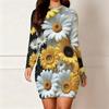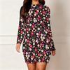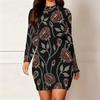 2025 Outono e Inverno Novo Estampa Floral 3D e Tingimento Moda Feminina Manga Longa Gola Redonda Vestido Envolvente de Quadril Dia dos Namorados Limitado