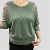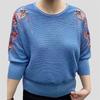 Women's Round Neck Plus Size Knit Sweater Loose Fit Three-Quarter Sleeve Embroidered Sweater Knitted Pullover Top
