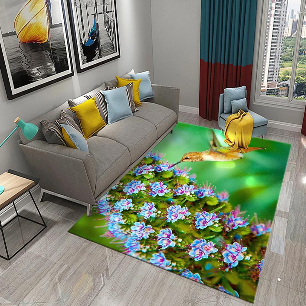 Hummingbird Flowers Rugs for Living Room Lovely Wild Animal Carpet Soft Floor Mat Wildlife Rugs for Bedroom Decorative Area Mats