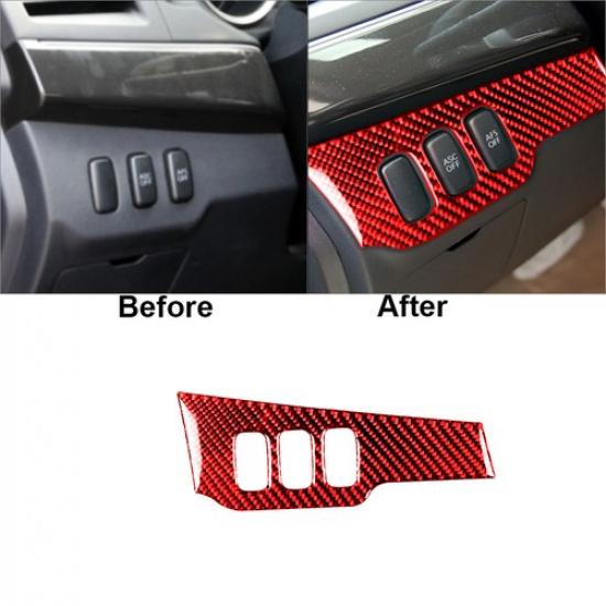 Red Carbon Fiber Headlight Control Cover Trim For Mitsubishi Lancer 2008-15