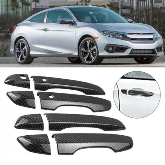 For Honda Civic 16-20 Exterior Door Outer Handle Cover Trim Carbon Fiber Black