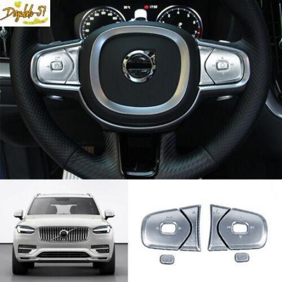 ABS Chrome Inner Steering Wheel Button Cover Decor 4X For Volvo XC90 2016-