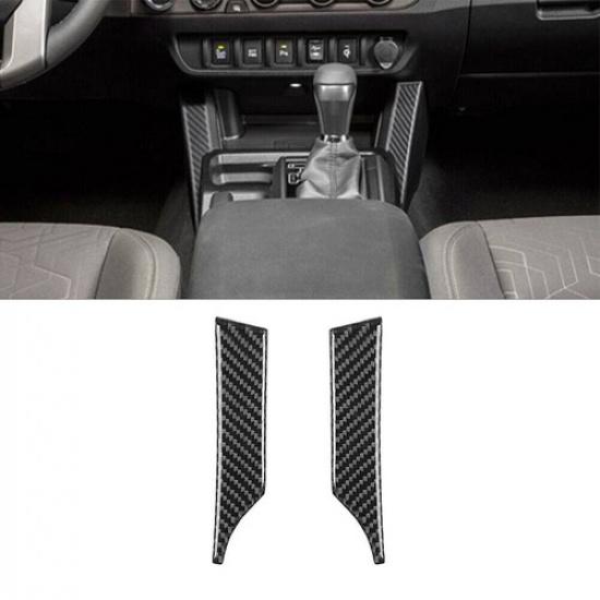 2Pcs For Toyota Tacoma 2016- Carbon Fiber Interior Floor Console Cover Trim
