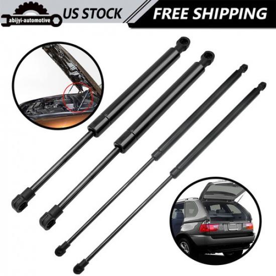 4Pcs Front Hood+Rear Window Glass Lift Support Gas Shock Struts For BMW X5 E53
