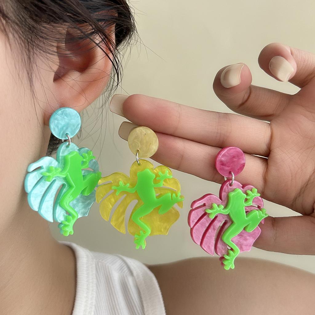 Creative Design Earrings Personality Fun Funny Frog Leaf Acrylic Fashion Earrings