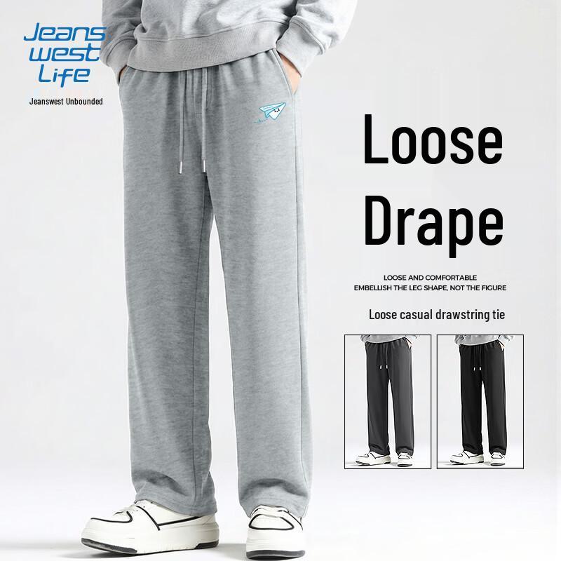 JEANSWEST LIFE 2026 New Collection. These boys' loose-fit, straight-leg pants are designed for spring and autumn. Made from a comfortable cotton-polyester blend with slight stretch, they feature a versatile style with cartoon and letter patterns. The relaxed drape and straight leg offer everyday comfort for outdoor activities and daily wear for teenagers and young adults.