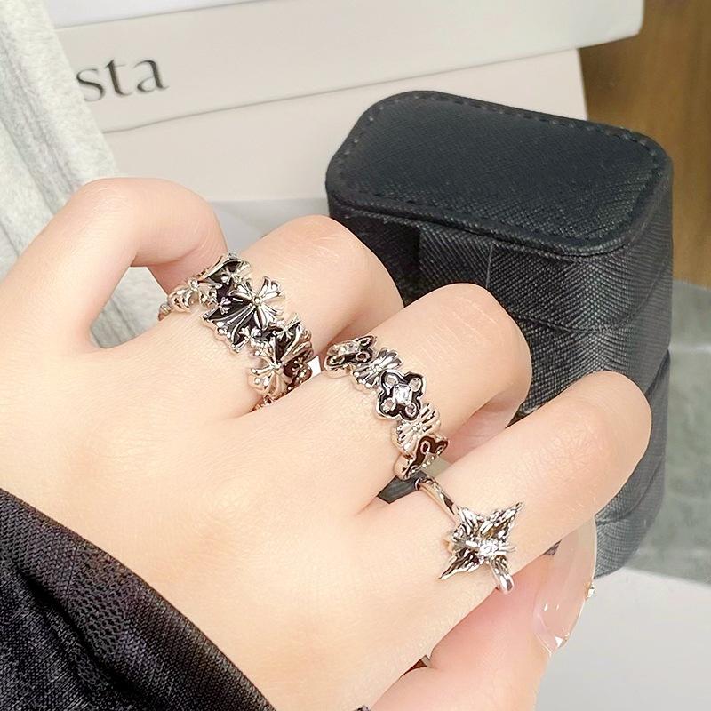 Dark Personality Four-Star Four-Leaf Clover Enamel Drip Ring Irregular Fold Personality Advanced Sense Stacked Ring