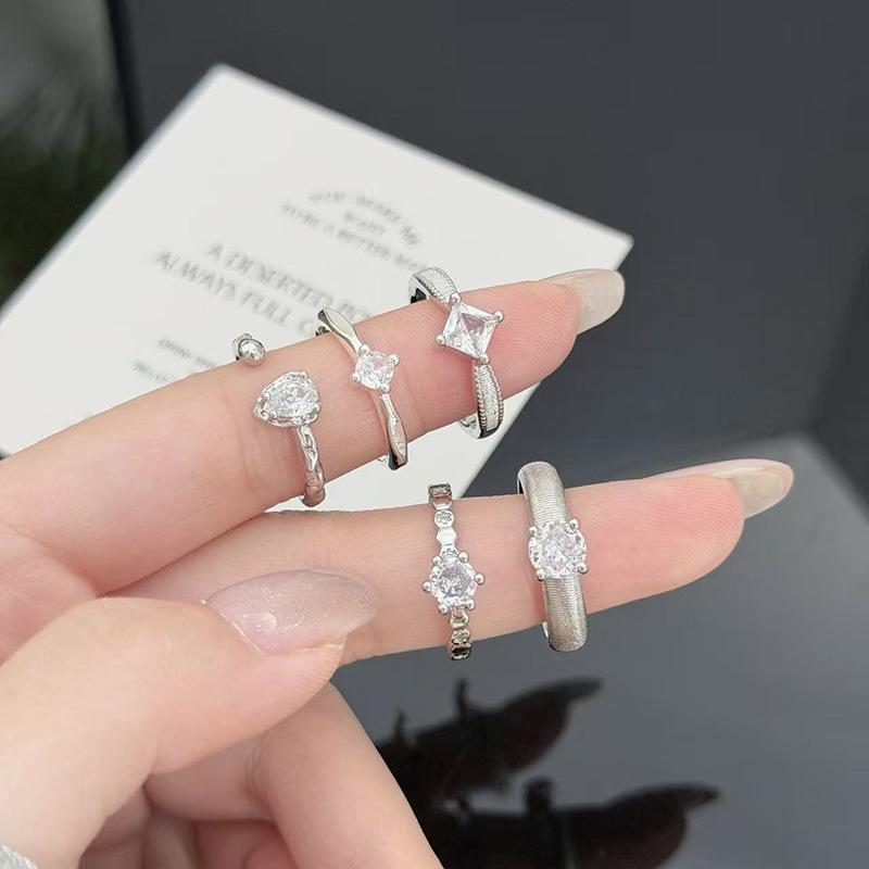 Gentle Personality Single Diamond Simple Diamond Ring Open Ring Women'S Commuting Niche Design Sense Stacked Index Finger Ring