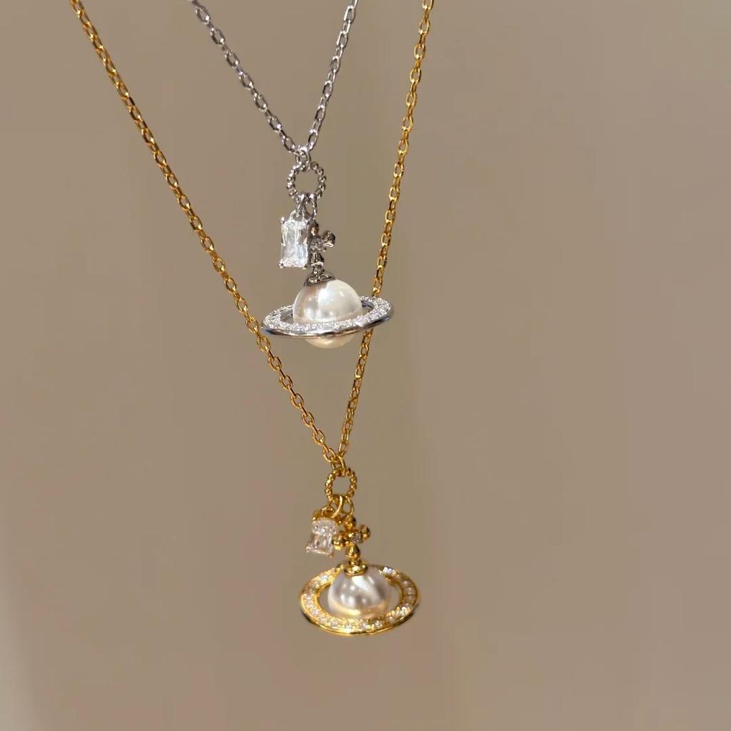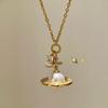 Vivian After Western University Three-Dimensional Saturn Pearl Necklace Light Luxury High Sense Flying Saucer Diamond Pearl Planet Pendant Female