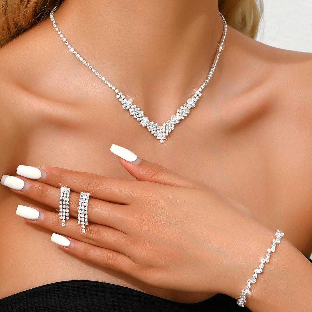 Vintage Necklace Set Women'S Jewelry Bridal Wedding Jewelry Rhinestone Bracelets Earrings Necklace Two-Piece Set