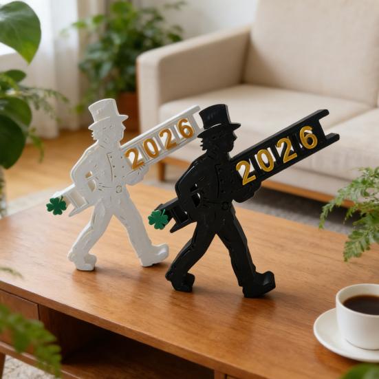 Placa de Mesa 2026 Impressa em 3D Feliz Ano Novo Festa Enfeite de Mesa para Prateleira Lareira Mesa Decoração Bandeja de 3 Andares