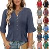 Women's Fashion Casual V-Neck Button-Front Pleated T-Shirt With Short Sleeves In Solid Color
