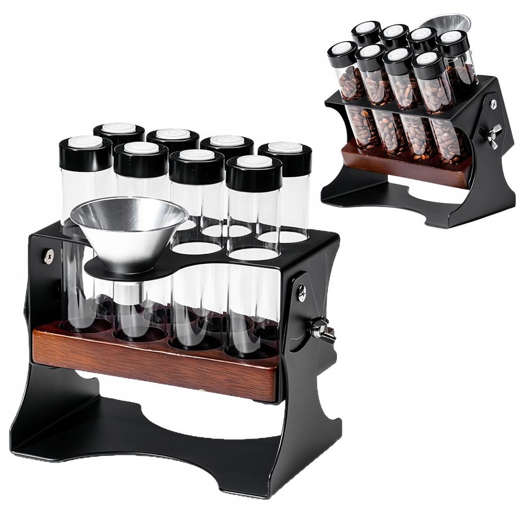 10pcs/set Coffee Bean Storage Stand Single Dose Coffee Bean Storage Display Stand Exhaust Valve 8 Tubes With Funnel Accessories