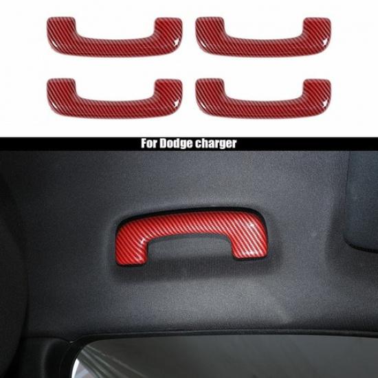 Red Carbon Roof Grab Handle Decor Cover Trim for Dodge Charger 2011+ Accessories