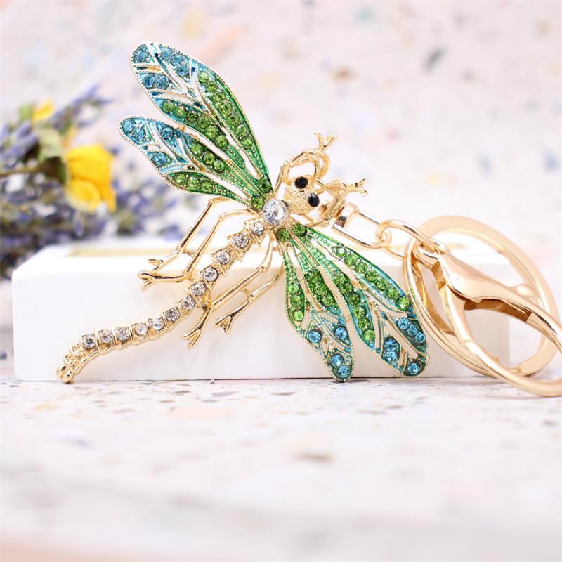 Chaveiro Inseto Libélula Strass Cristal Argola Porta-Chaves Carro Mulheres DIY Acessório Joias Presentes Atacado