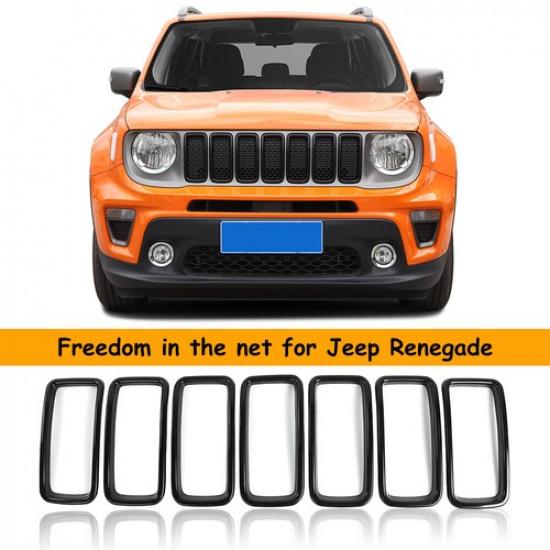 7x Black Front Grille Grill ert Bezel Ring Decor Cover for Jeep Renegade 19+