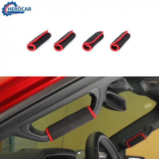 4pcs Front Rear Door Grab Bar Handle Cover Protect for Ford F-150 +Red ABS