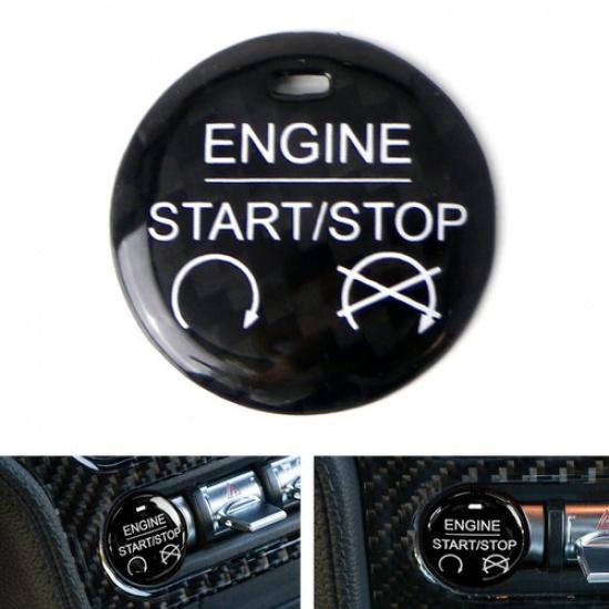 Black Carbon Fiber Keyless Engine Push Start Button Cover For 15-23 Ford Mustang