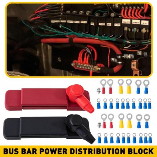 Black & 12 Red Terminal Busbar Bus Bar Power Distribution Block 180A 12V DC Pair