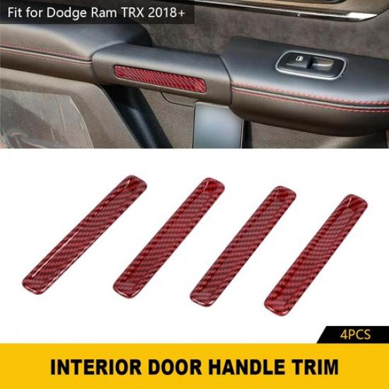 4x Red Carbon Fiber Interior Door Handle Bezels Trim Strips For Ram 1500 TRX 21+