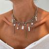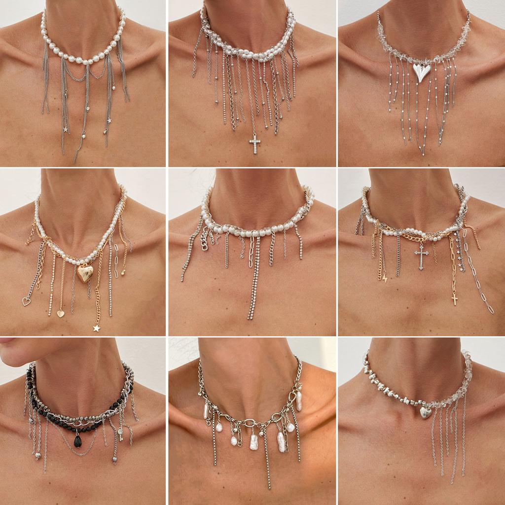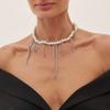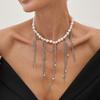 Europe, America, sweet and cool love fringed star and moon pendant necklace, imitation pearl personalized chain collarbone chain female