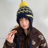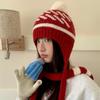Red hairball knitted ear protection hat women's season shows a small face wool hat big head circumference warm bag head hat