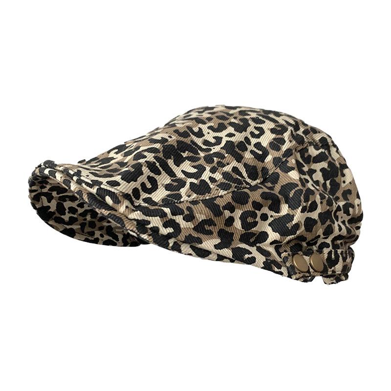 American retro Spice Girl style leopard print forward hat women's season niche fashion design duck tongue beret
