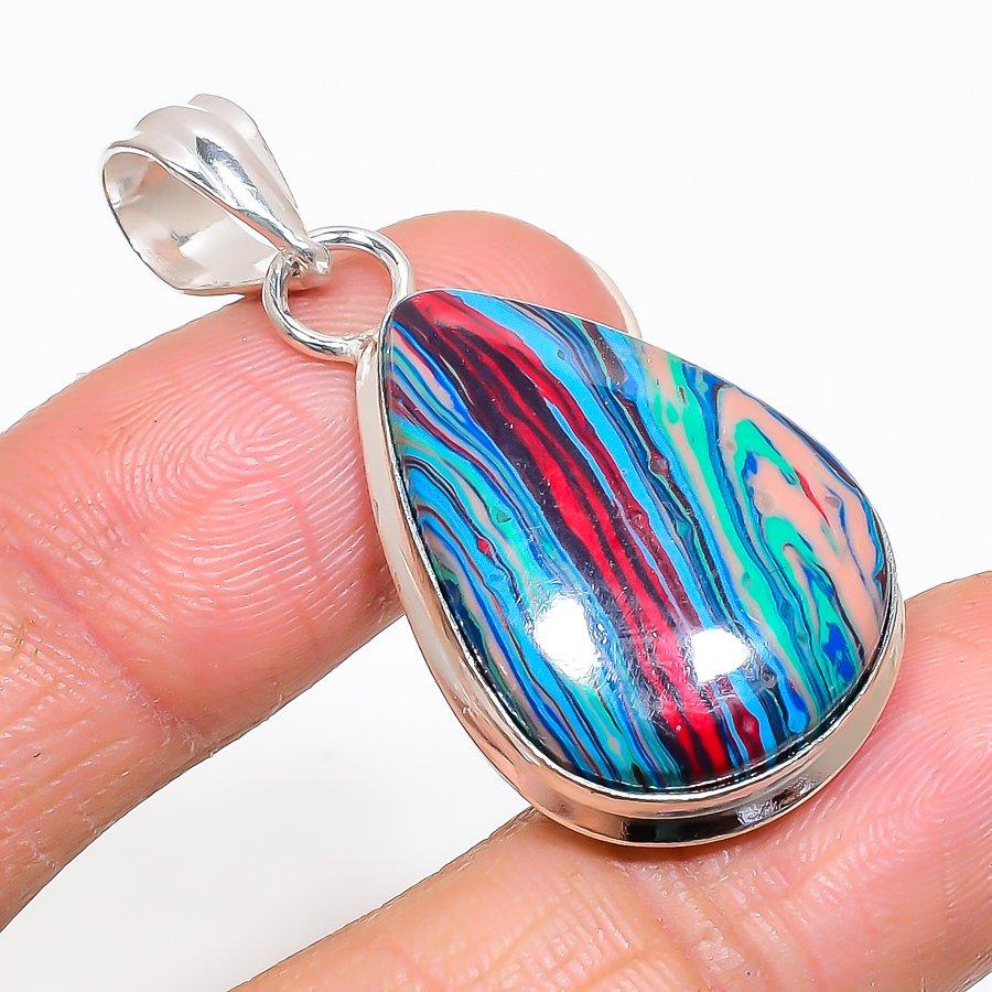 Natural Rainbow Calsilica 925 Sterling Silver Jewelry Pendant 1.81" AP-14022