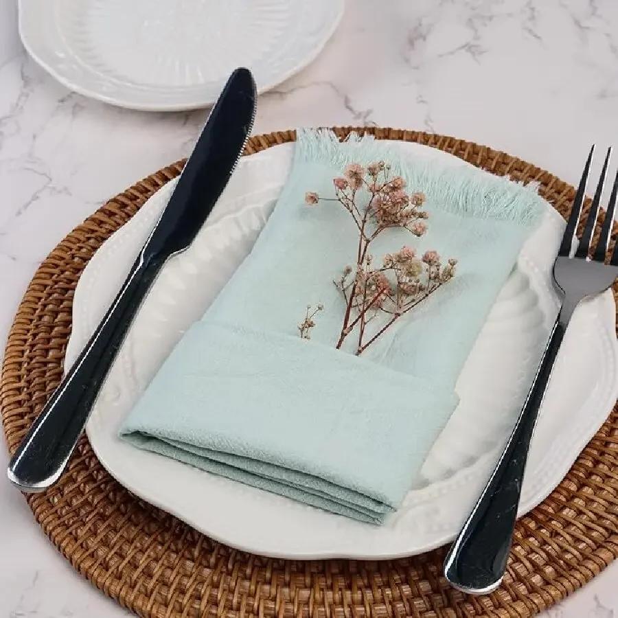 50 Peças Guardanapo de Mesa Algodão Verde Sálvia Gaze Toalha Rústico Páscoa Suprimentos para Casamento Decoração e Acessórios para Mesa de Festa de Aniversário
