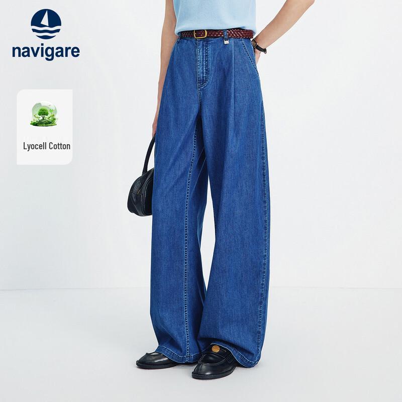 Navigare Women's Loose Fit Lightweight Wide-Leg Jeans