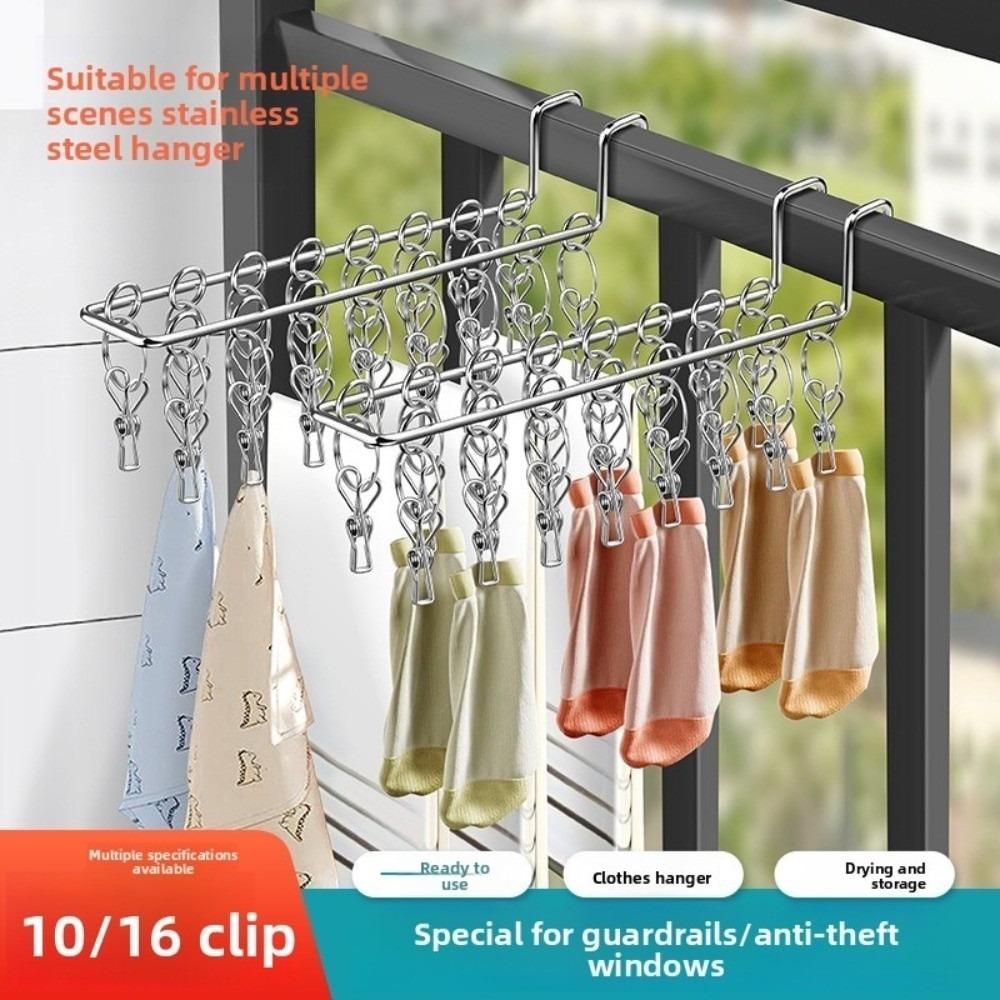 10/16 Clips Sock Drying Rack Wall-Mounted Stainless Steel Underwear Drying Rack Durable with Detachable Clips