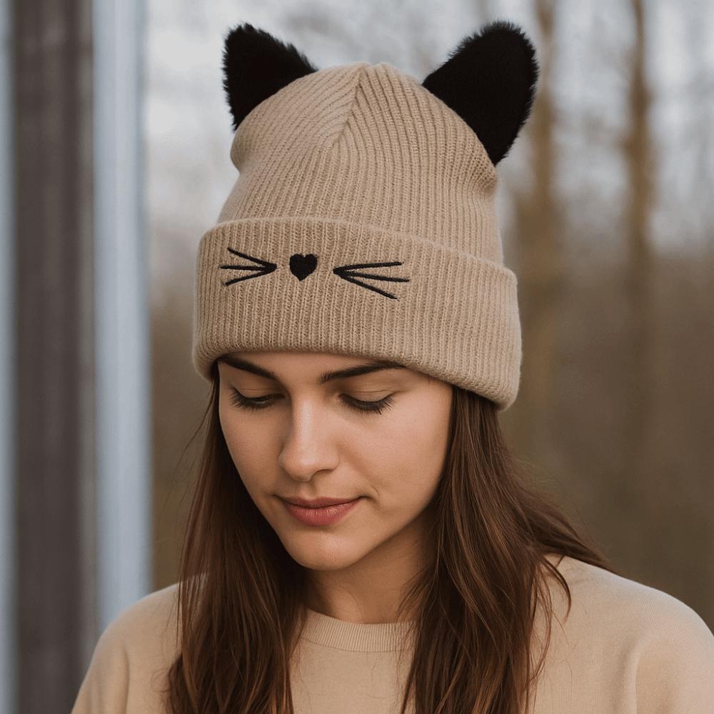 Wool Knitted Pullover Hat Warm Cold Hat Cute Cat Ears Beanies Winter