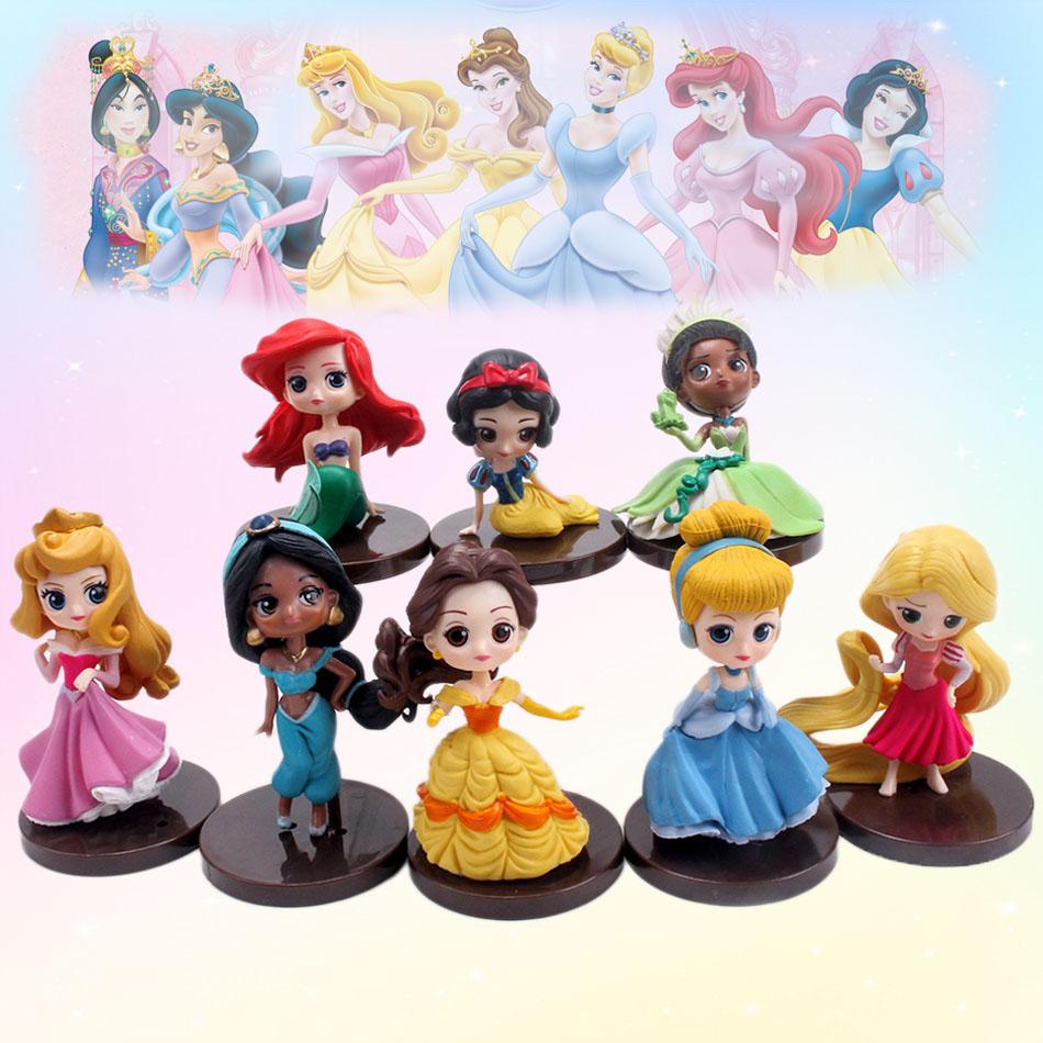 8 Peças/Conjunto Kawaii Princesa Q 9cm Rapunzel Branca de Neve Jasmine Mulan Ariel Figura de PVC Enfeites de Bolo Brinquedos Presente para Criança