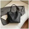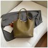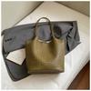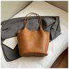 Autumn new texture braided pattern commuting simple large capacity retro solid color bucket armpit shoulder bag for women