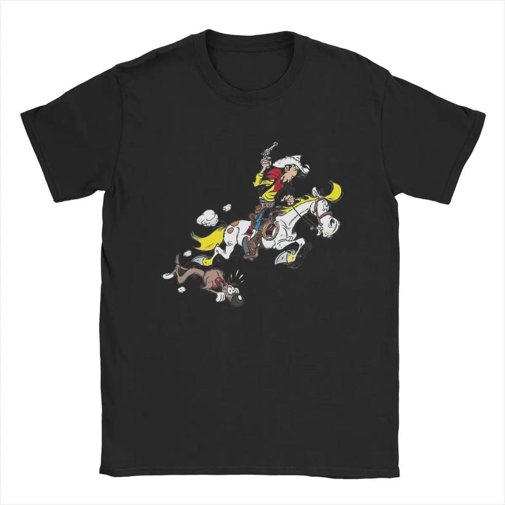 Camisetas Lucky Luke Masculinas 100% Algodão Casual Camisetas Gola Redonda Camiseta Manga Curta Roupas Tamanho Plus