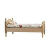 Apresenta entalhes intrincados de inspiração vintage na cabeceira, construção em madeira de faia com madeira natural e roupa de cama macia removível que realça a autenticidade da sala em miniatura.