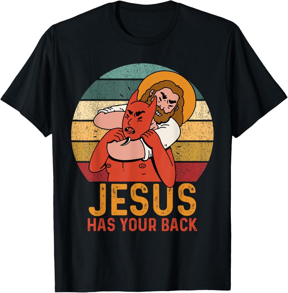 Jesus Has Your Back Fighting Devil Graphic T-Shirt Men's Casual Cotton Short Sleeve Top
