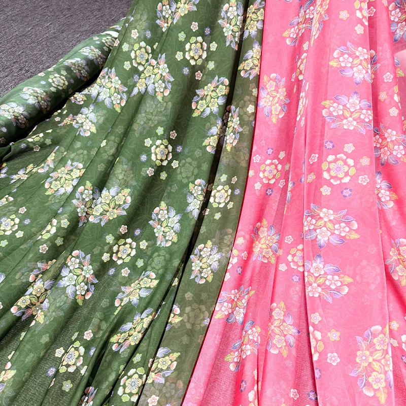 100*150cm Tecido Chiffon Floral Estilo Chinês Grupo de Chá Estampa Floral Tecido DIY Vestido Hanfu Fantasia de Dança de Casamento Decoração