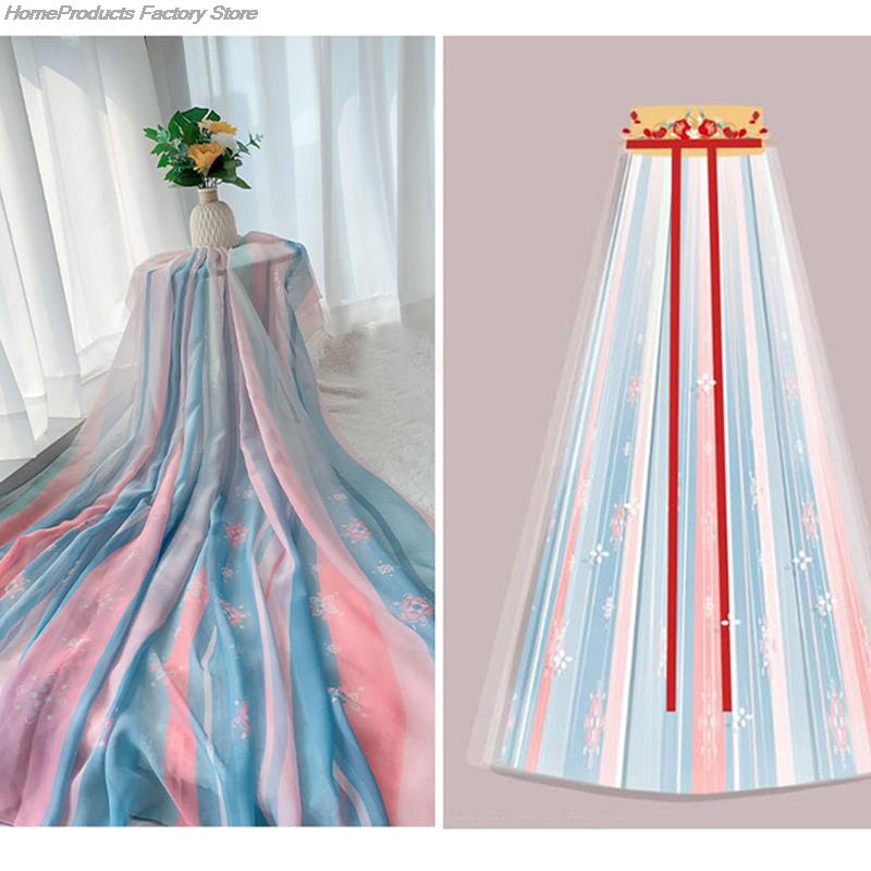 1M Ancient Style Rainbow Printed Chiffon Fabric 30D Organza Tulle Fabric For Diy Hanfu Pleated Tulle Skirts Wedding Dress Decor