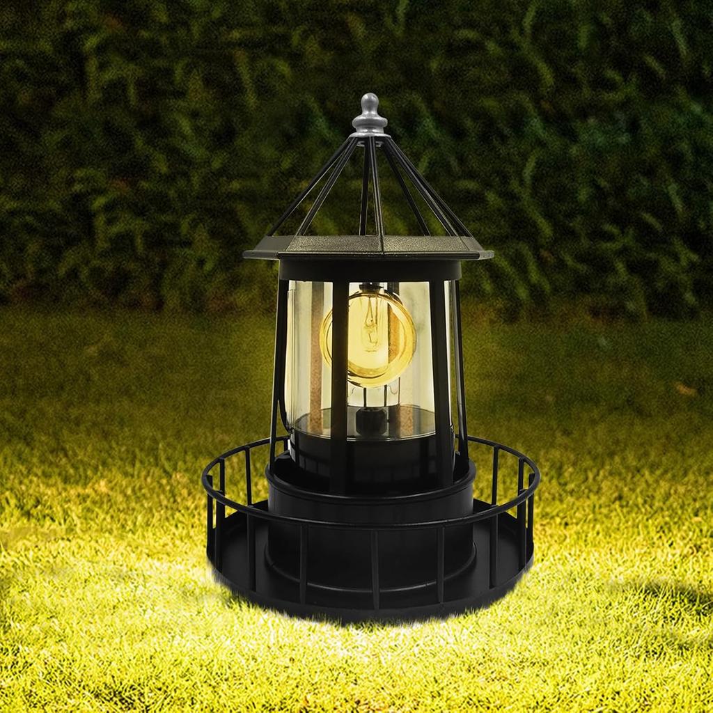 LED Solar Powered Lighthouse, 360 Degree Rotating Solar Lighthouse Outdoor, IP65 Waterproof Solar Lighthouse Garden Courtyards Lamps for Patio Garden