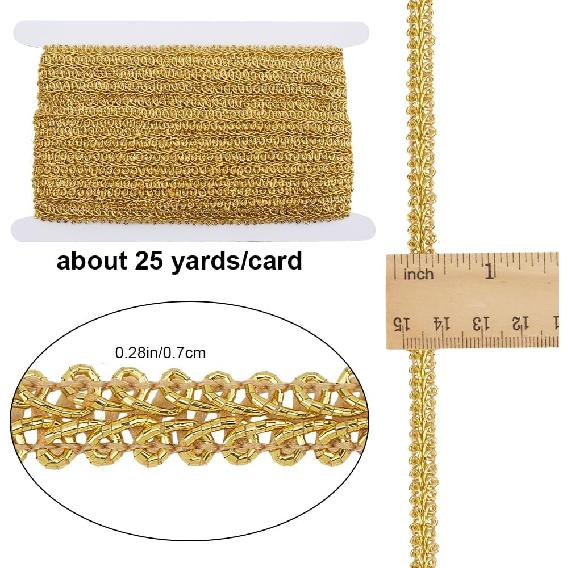 GORGECRAFT 25 Yards Metallic Lace Trim Embroidered Gold Braided Centipede Edge Ribbon Applique Gimp Woven Edging Trimmings for Sewing Christmas Home