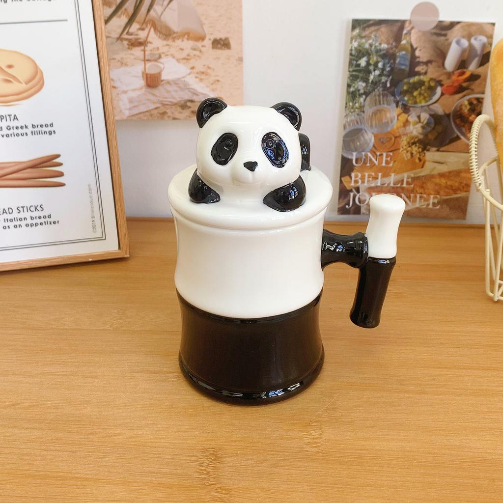 Panda cup high-value ceramic water cup with lid creative mug children's home coffee breakfast cup souvenir