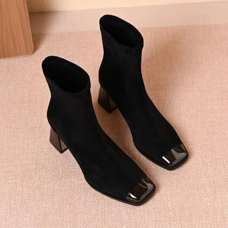 High-heeled Women's New Style Thick-soled Square-toe Short Boots with Shoes